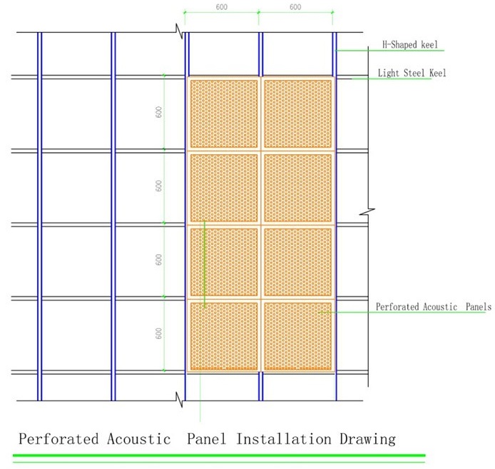 (1)Perforated acoustic board is a kind of slit resonance absorption material which is made from high density,panel with grooves on the surface and perforated holes at the back side.